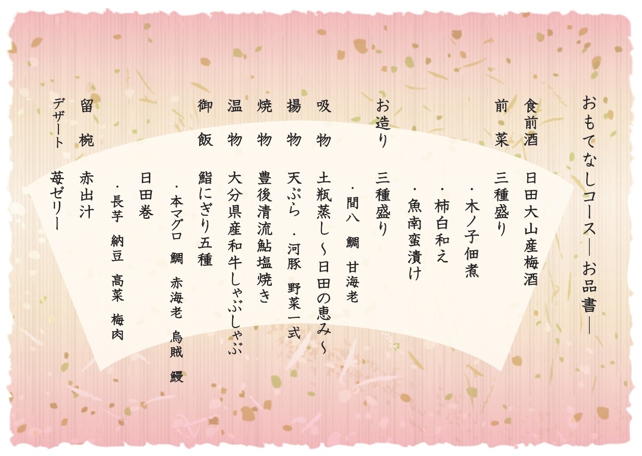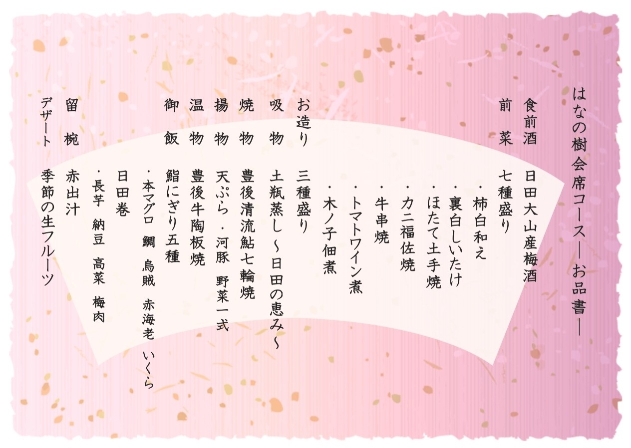 おおいた和牛など選りすぐり食材を味わう『はなの樹会席コース』